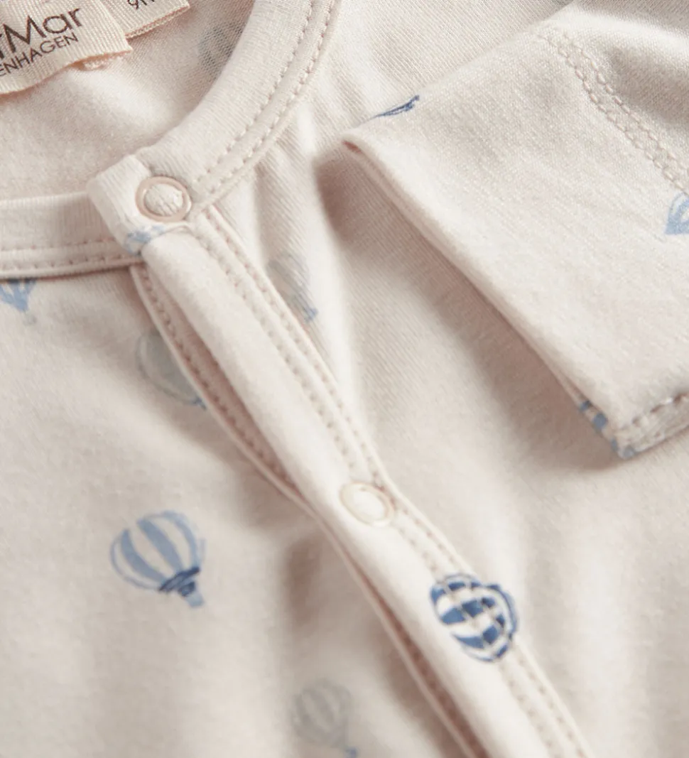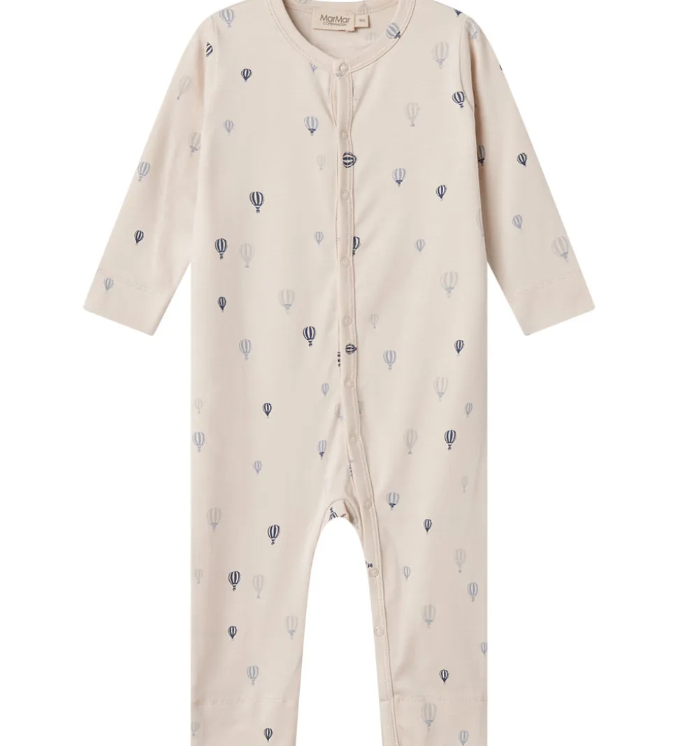 Fin MarMar heldragt i en lysebeige med et diskret print af små luftballoner i blå nuancer.