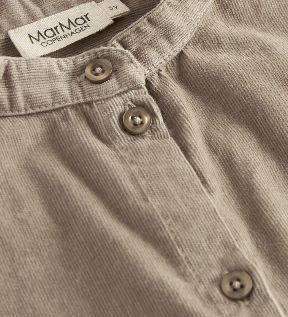 Enkel MarMar skjorte i en stilren brun nuance, og den er lavet af blødt fløjl i en fastvævet kvalitet. Skjorten har lange ærmer og en rund halsudskæring uden krave, der giver et moderne udtryk. MarMar skjorten er udstyret med en gennemgående knaplukning og en let buet kant forneden, hvilket sikrer en flot pasform.