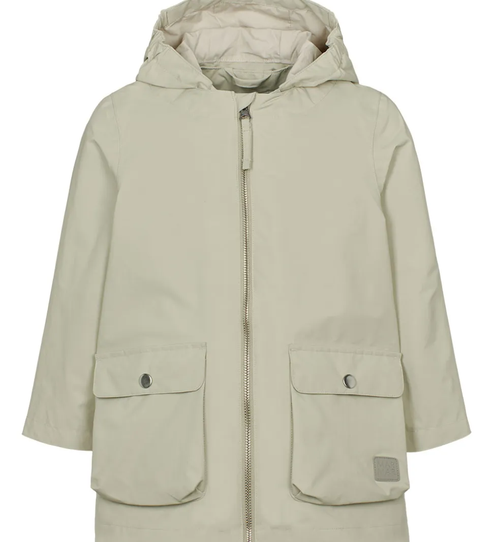 MarMar sommerjakken har to markante klaplommer med trykknapslukninger på fronten og en foldedetalje på tværs af ryggen. Sommerjakken er ikke vatteret og har et glatvævet for.