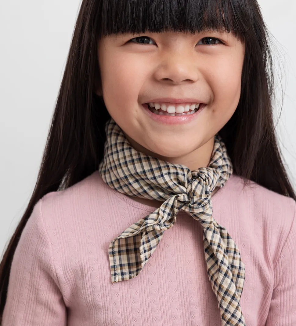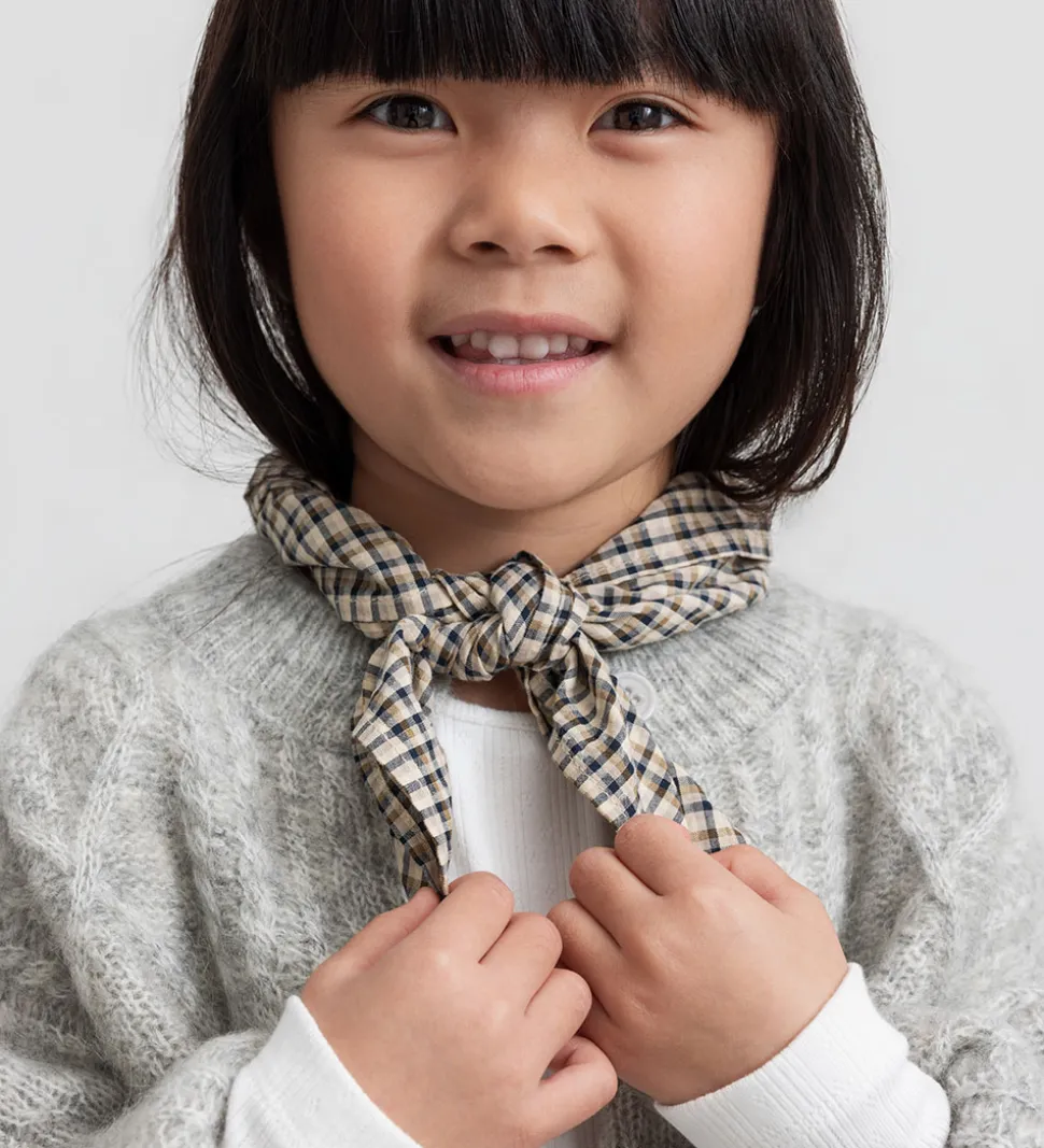 Flot MarMar tørklæde i en elegant kombination af mørkeblå og beige tern. MarMar tørklædet er designet med et enkelt og tidløst udtryk, der passer til mange stilarter. Perfekt til at fuldende ethvert outfit.