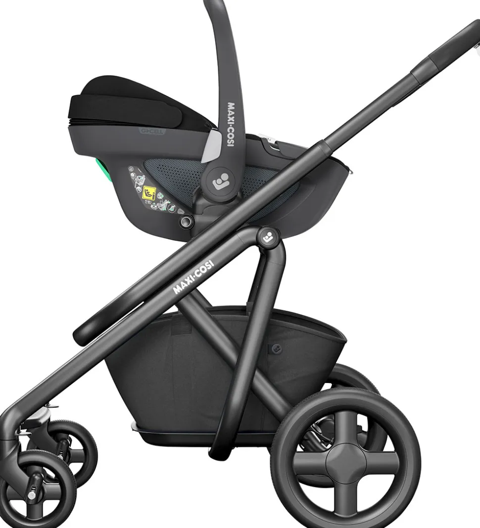 Denne autostol kan let klikkes fast på klapvogne fra Maxi-Cosi.