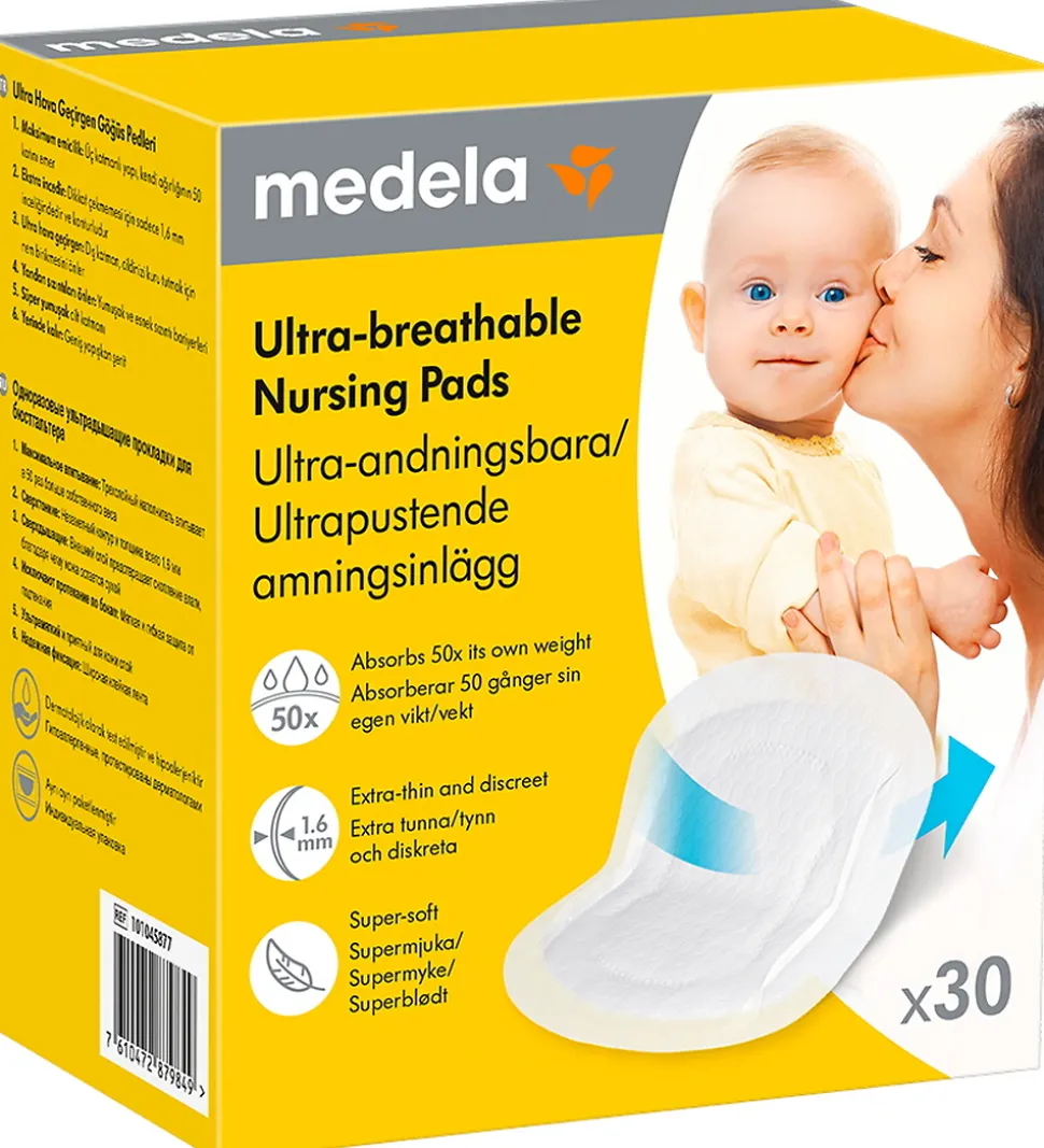 Medela ammeindlæggene har en god pasform og en praktisk klæbestribe, som gør det muligt at klistre dem fast på indersiden af bh’en. Ammeindlæggene er udviklet til at holde dig tør, med den absorberende 3-lags kerne som suger brystmælk, mens det vandtætte lag på bagsiden beskytter dit tøj mod gennemvædning.