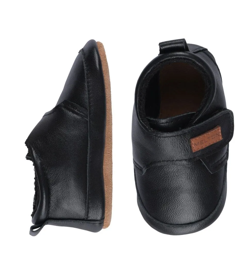 Skindfutterne lukkes over vristen med velcro, så den er er nem og hurtig at få af og på foden. Bunden er lavet af ruskind for at sikre et godt fodfæste, så barnet ikke falder.