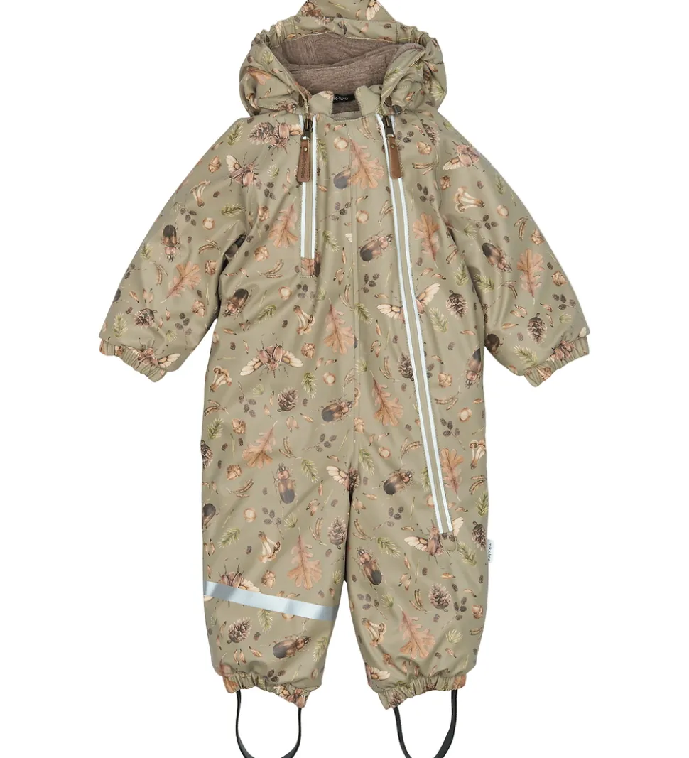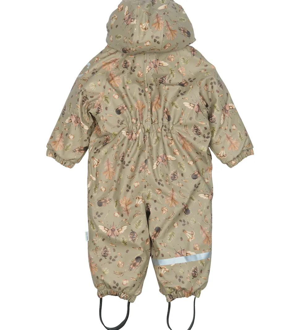 Fin Mikk-Line flyverdragt i lysegrøn PU med print af insekter, blade og andre naturmotiver. Flyverdragten har praktiske refleksdetaljer.