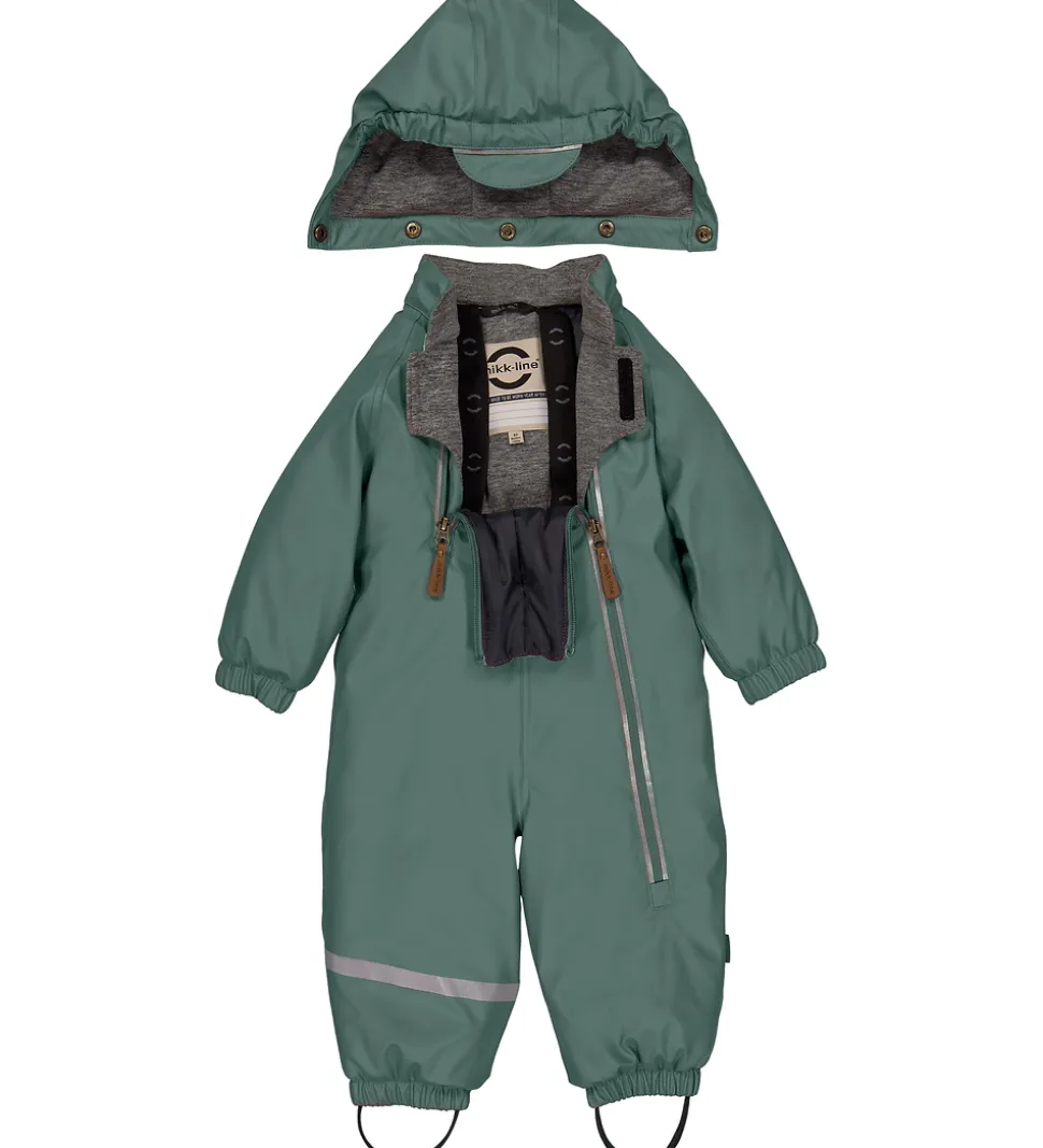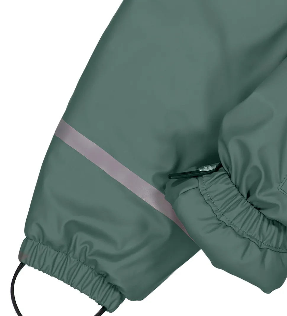 Smart Mikk-Line flyverdragt i støvet grøn PU. Flyverdragten har praktiske refleksdetaljer.