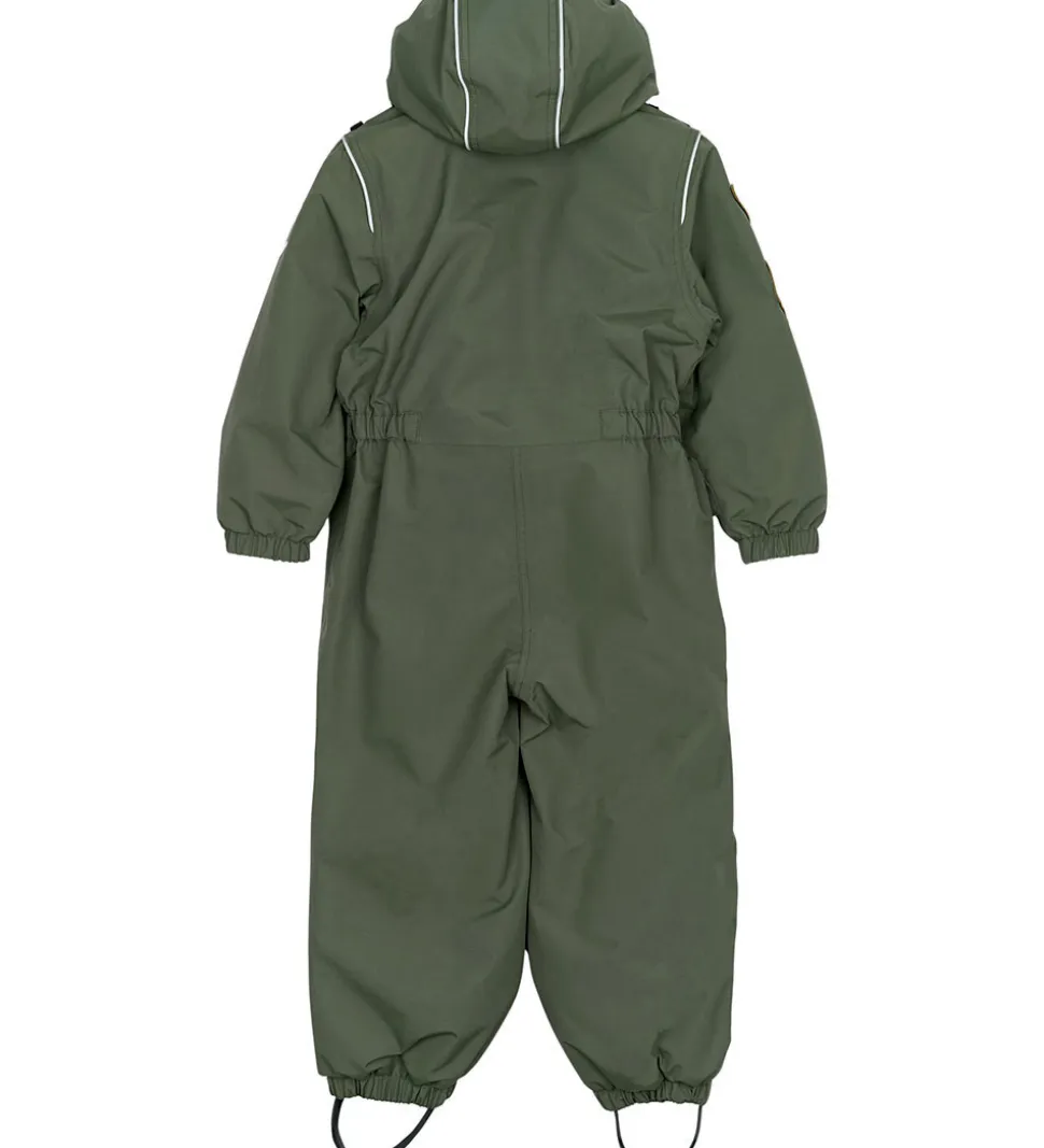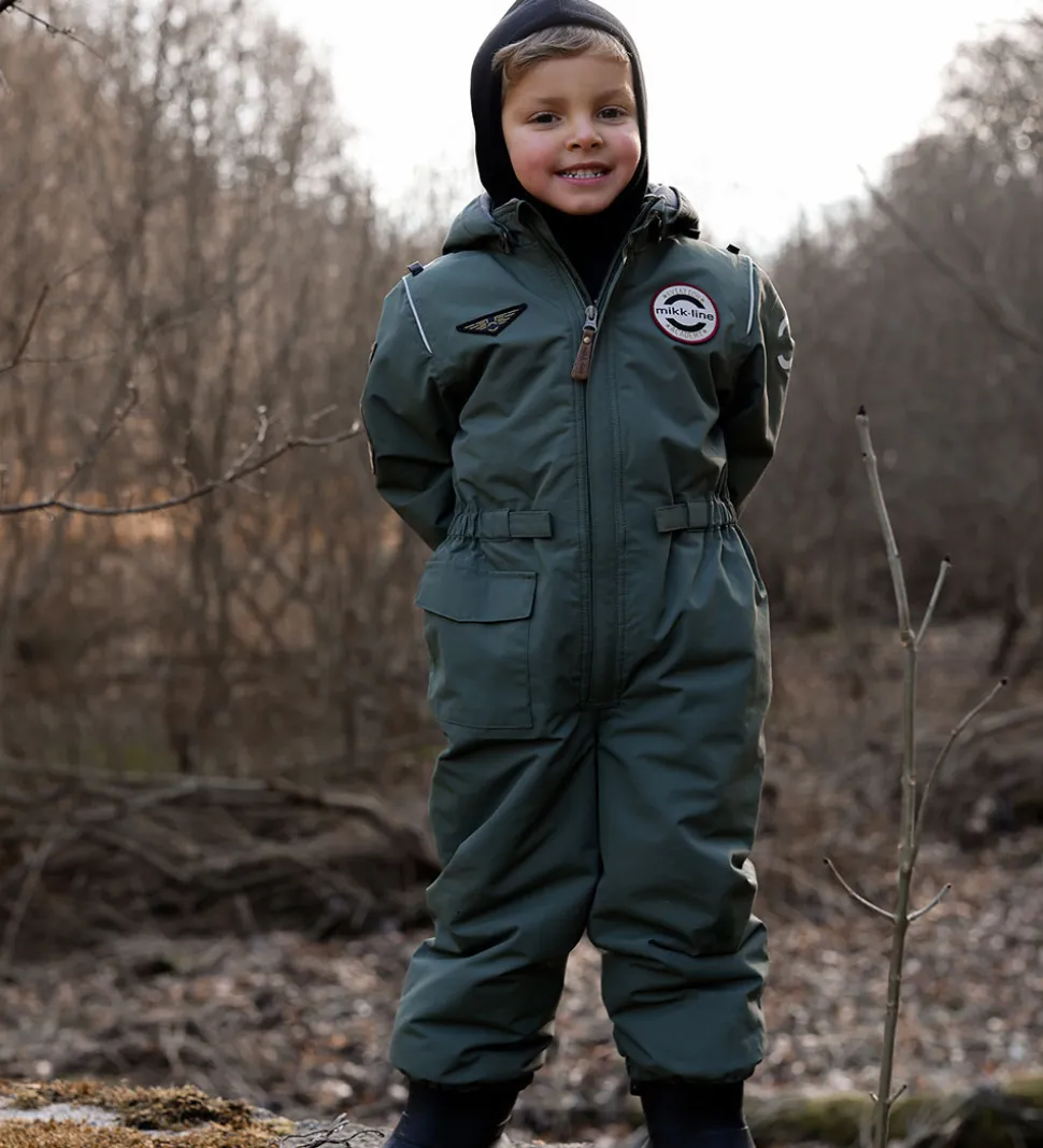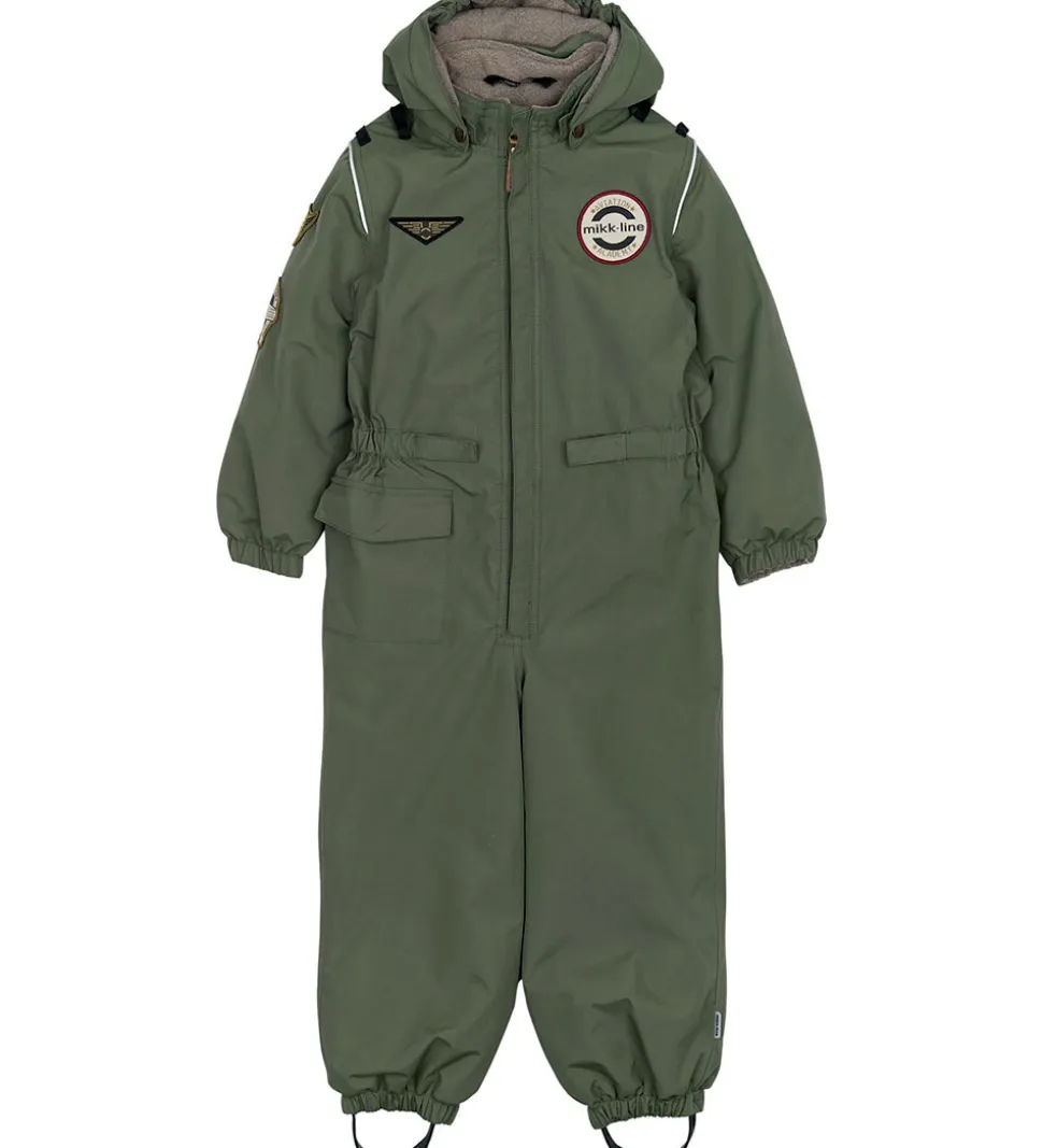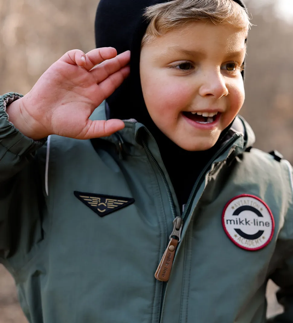Sej Mikk-Line flyverdragt i støvet grøn med refleksdetaljer. Flyverdragten er lavet i et pilot-design, som har flotte applikationer og detaljer, så regntøjet ligner en uniform.