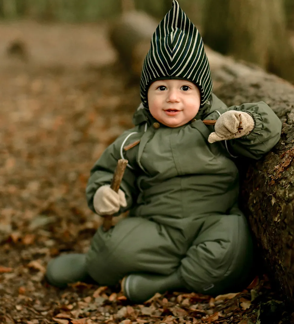 Sej Mikk-Line flyverdragt i en mørk, støvet grøn nuance med refleksdetaljer.