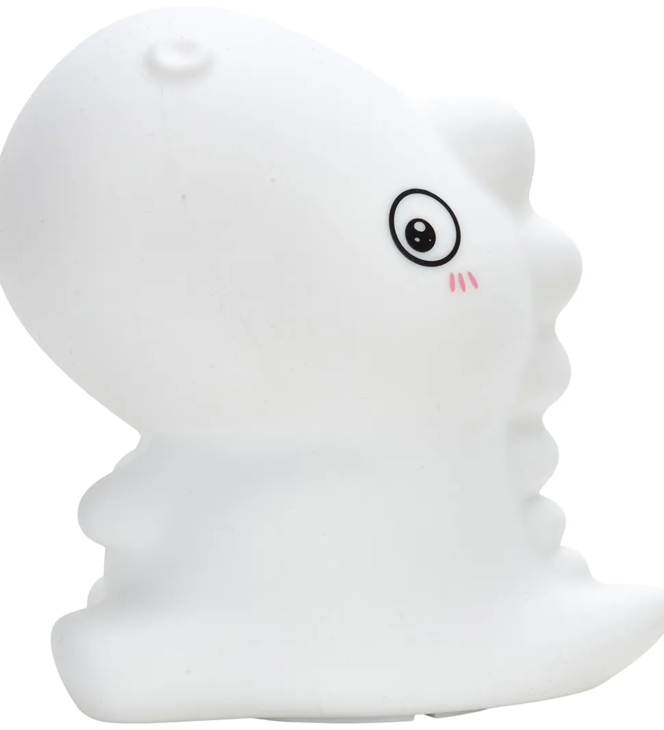 Smart Mikk-Line natlampe, der forestiller en dinosaur i hvid, med sorte øjne og detaljer.