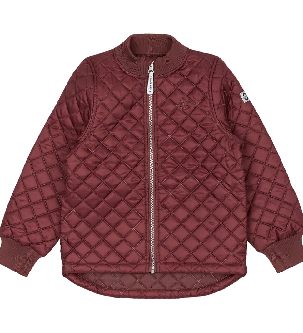 Lækkert Mikk-Line termotøj bestående af en termojakke og et par termobukser i ensfarvet støvet rød.