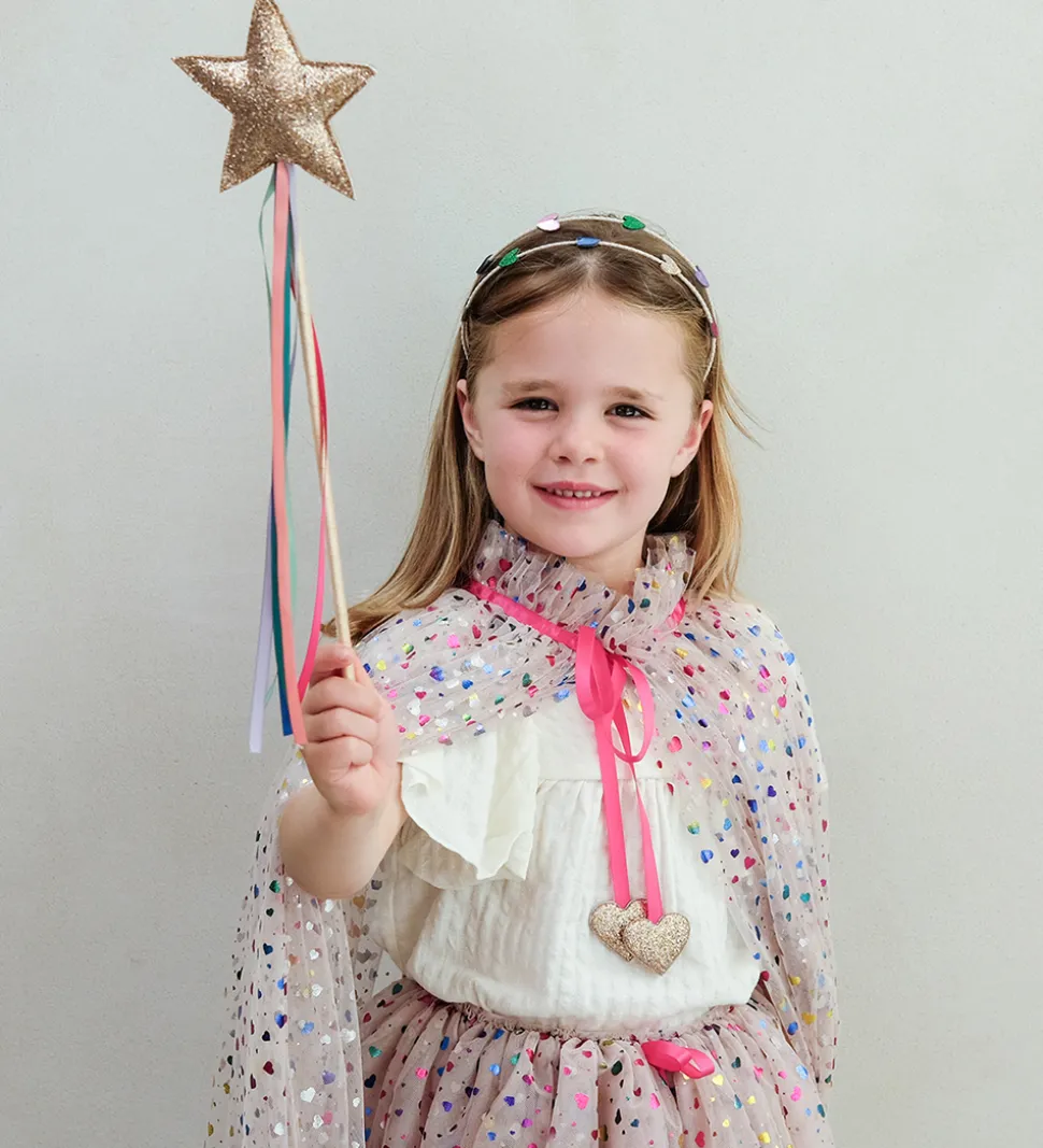 Mimi & Lula kappen er fremstillet af tyl, og har en flot satinbåndlukning. Kappen er perfekt til fastelavn eller som en sjov del af hverdagslegen.