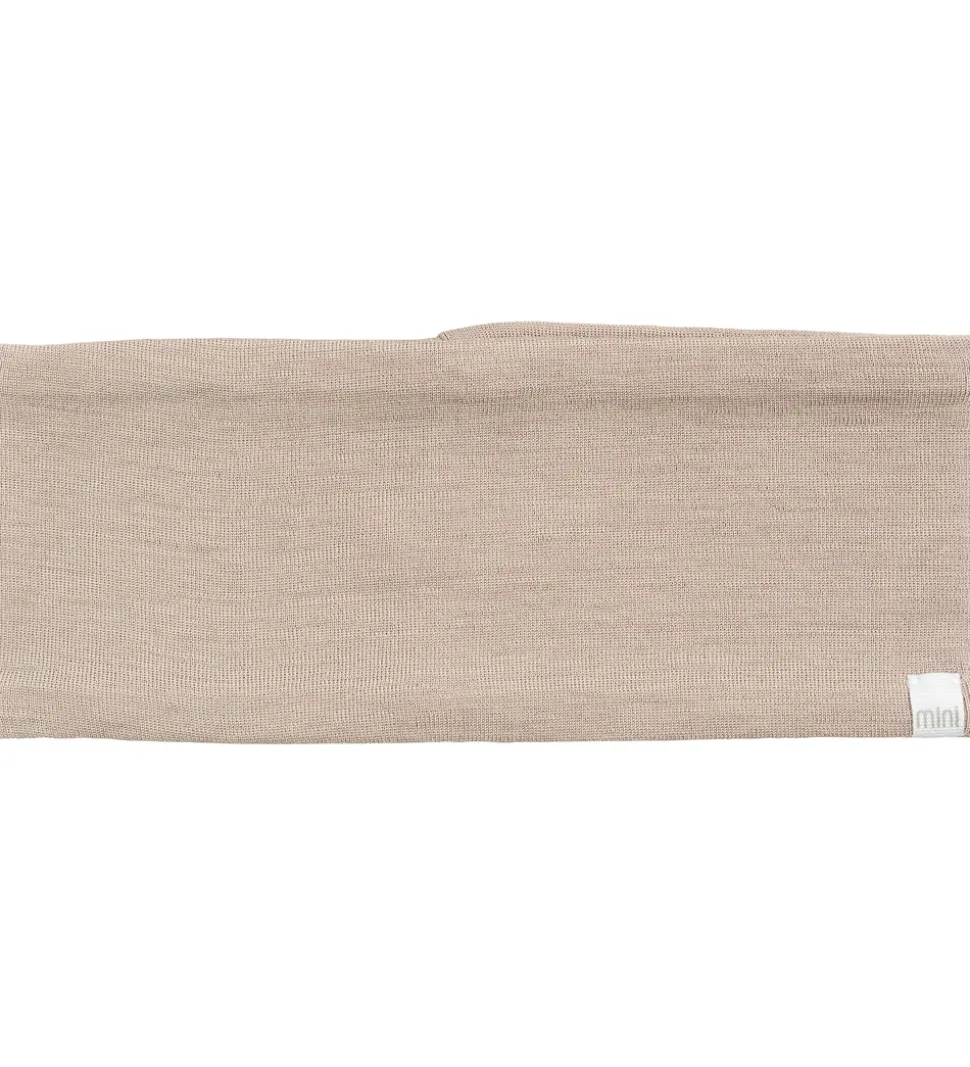 Lækkert Minimalisma pandebånd i ensfarvet beige med ribstruktur, og det er lavet af blødt merinould. Minimalisma pandebåndet er bredt og består af to lag, så det luner ørerne dejligt.