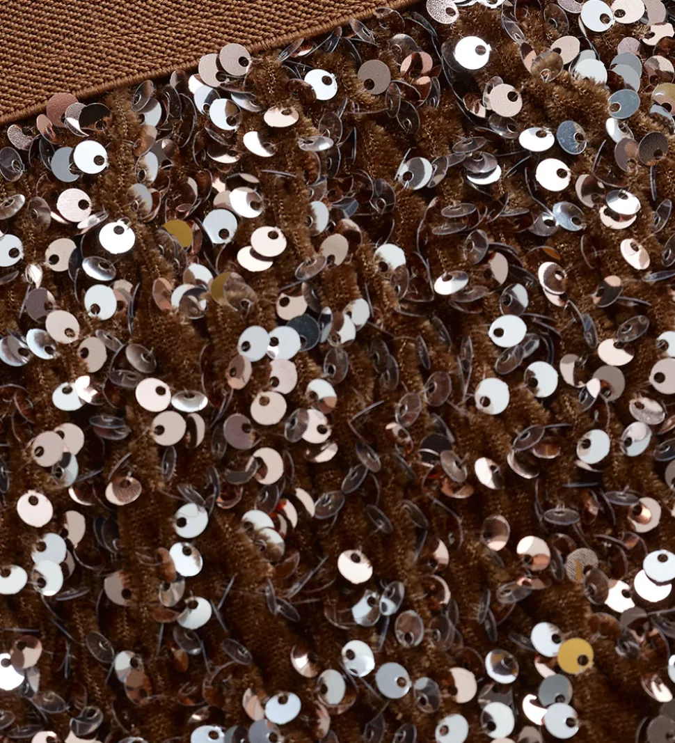 Elegant nederdel fra Minymo i brunt velour dækket af glitrende pailletter.