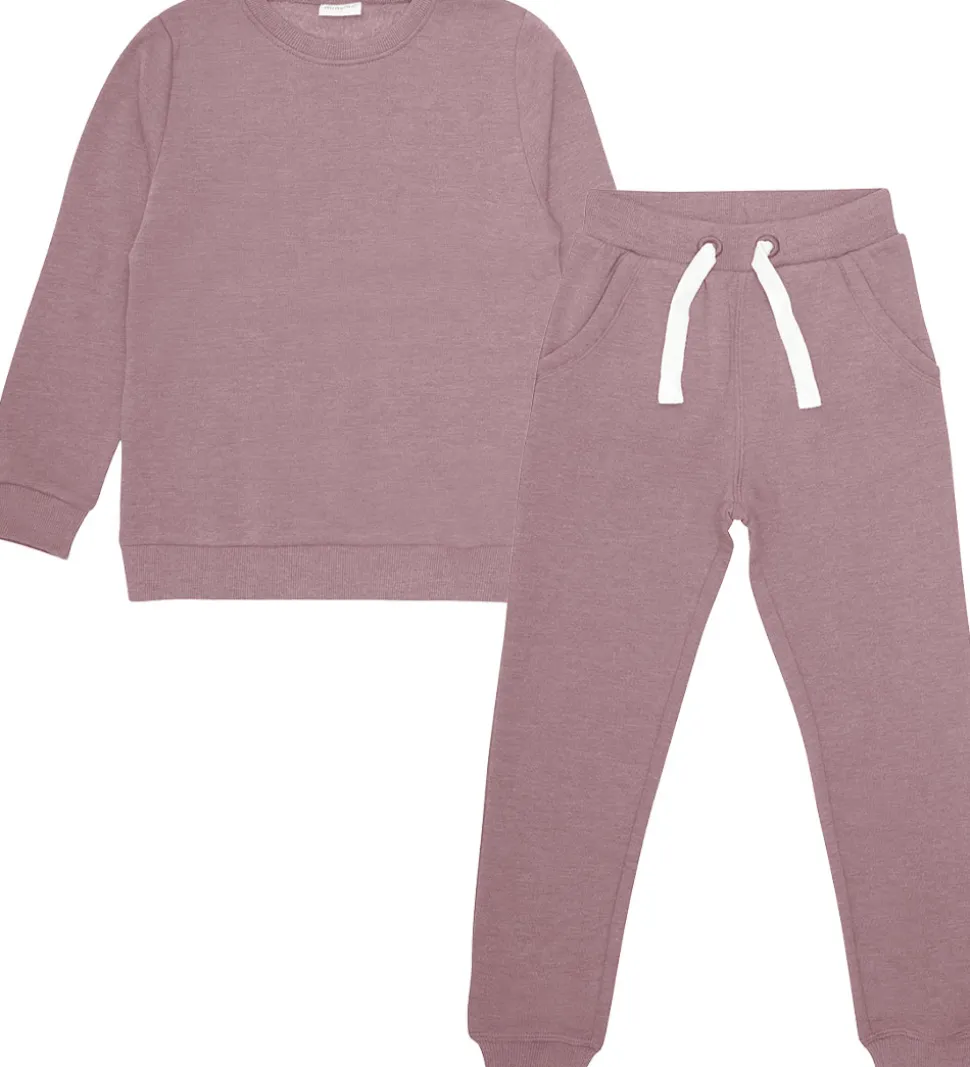 Dejligt Minymo sweatsæt i en smuk, støvet lavendelfarve, bestående af en sweatshirt og et par matchende sweatpants.