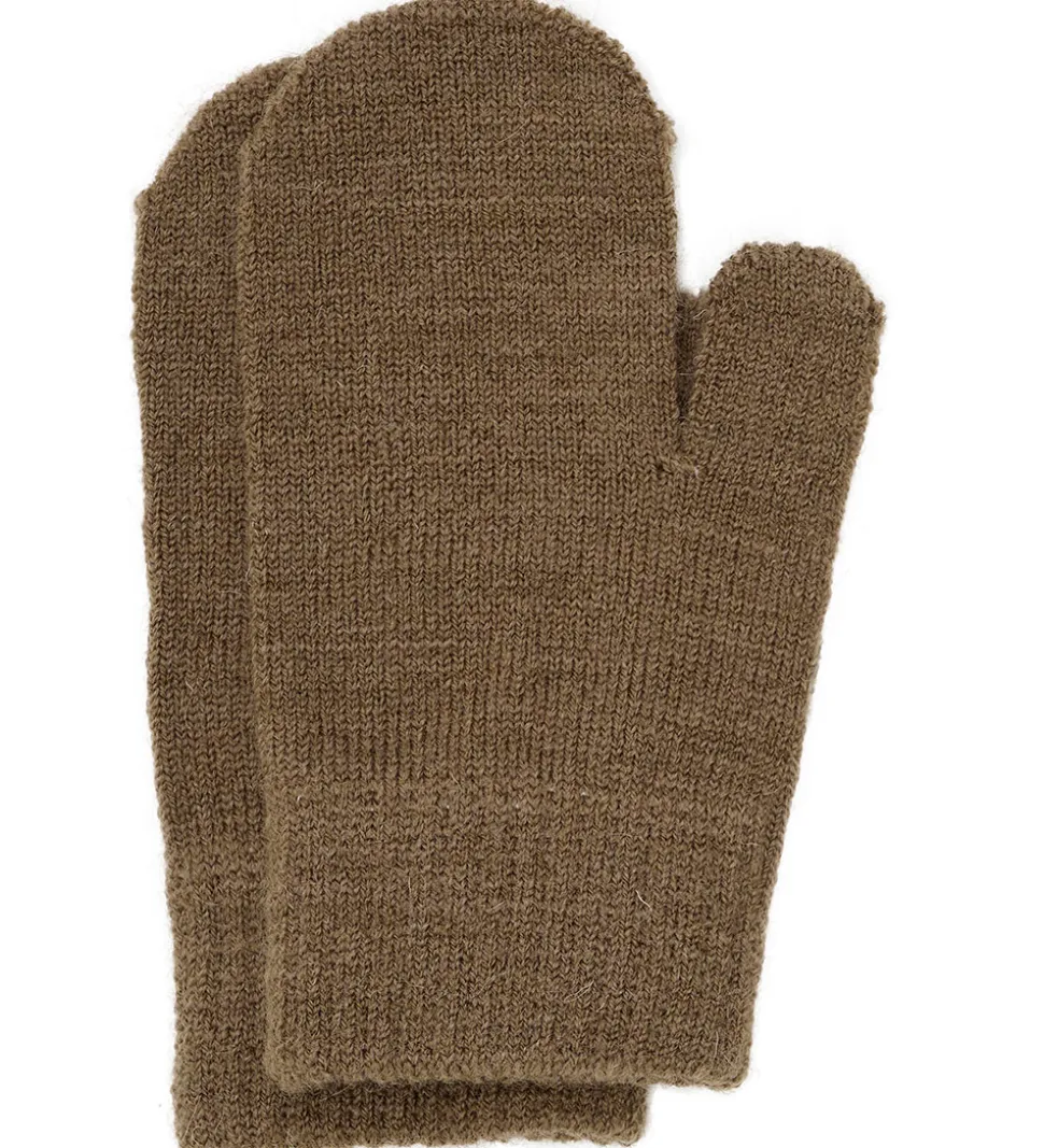 Lufferne har brede, elastiske ribkanter ved håndleddene og er strikket i en blød uldblanding.