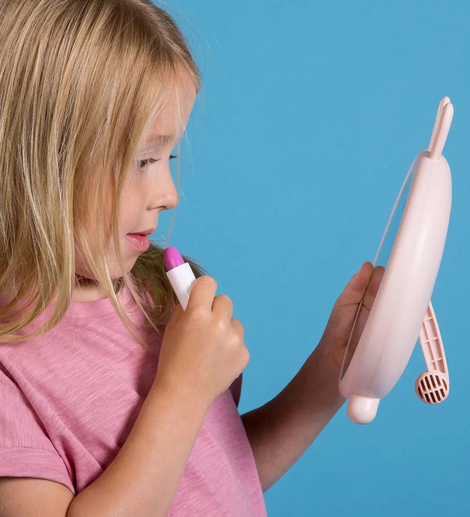 Flot Miss Nella sæt bestående af en rosa læbepomade og en rosa neglelak med glimmer.