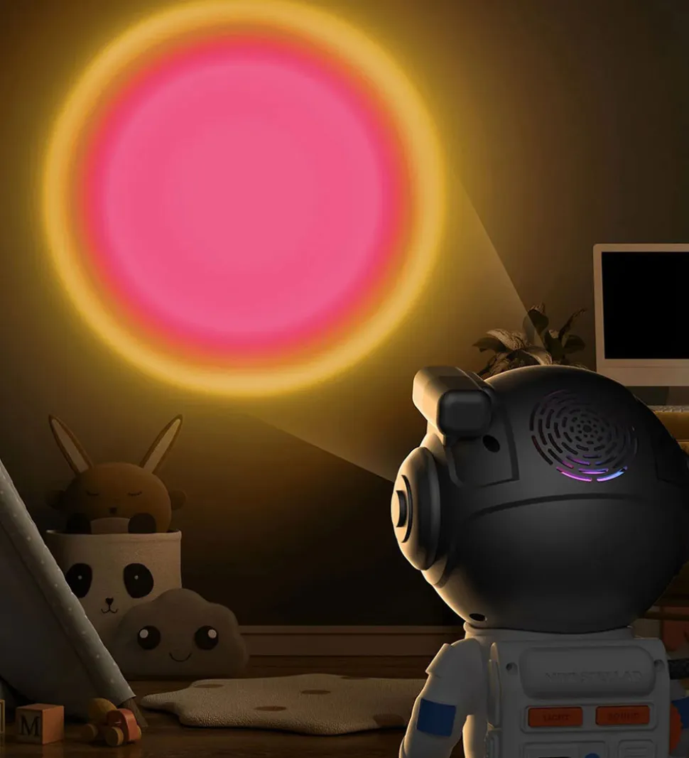 Mobility On Board projektoren er lille og trådløs og kan styres med en fjernbetjening. Projektoren kan lyse i syv flotte farver med justerbar lysstyrke. Den kan afspille beroligende white noise, og astonautens hoved kan rotere 180 grader.