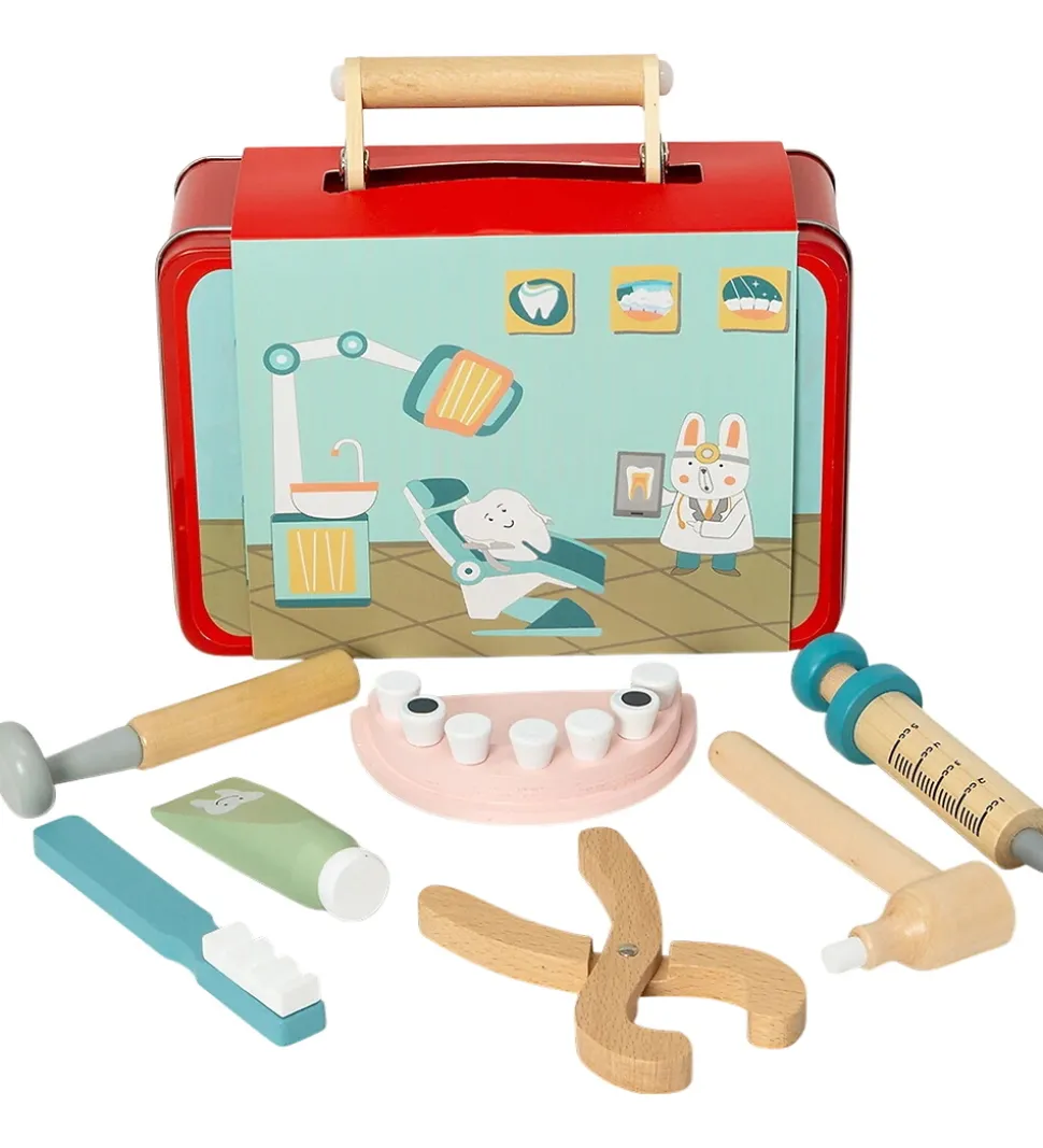 Charmerende Molly & Rose tandlægekuffert. Sættet indeholder forskellige tandlægeinstrumenter og en sød illustration på forsiden. Perfekt til at stimulere fantasifuld leg.