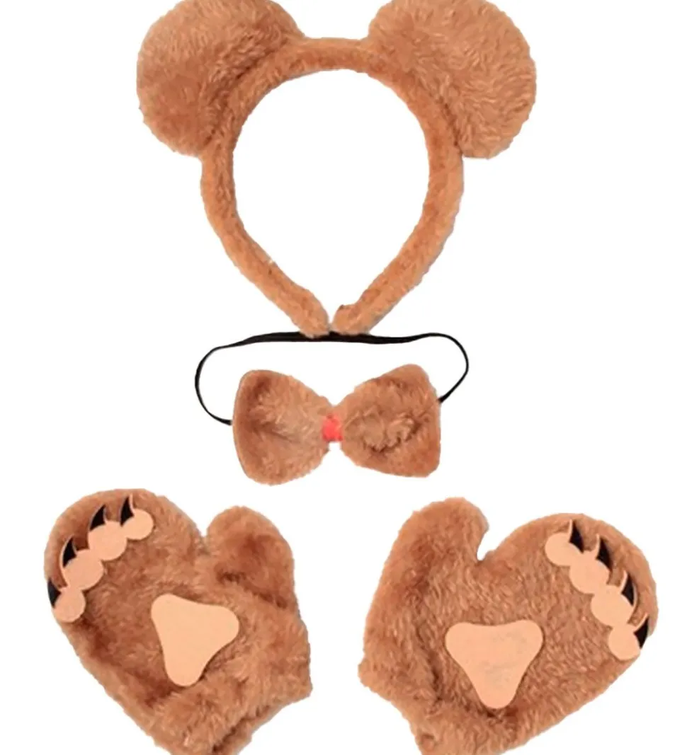 Molly & Rose hårbøjlen har store, runde ører, og butterflyen har en blød elastik i halsen. Handskerne ligner store, bløde bjørnepotter. Det er det perfekte tilbehør til fastelavn eller halloween, men er også god til dagligdagens leg.