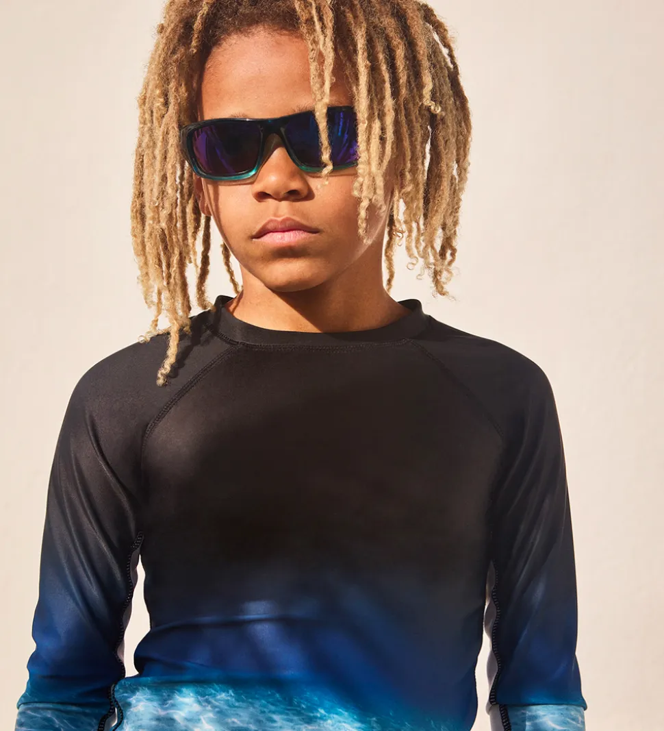 Smarte Molo solbriller med stel i blå nuancer med blå, aflange brilleglas.