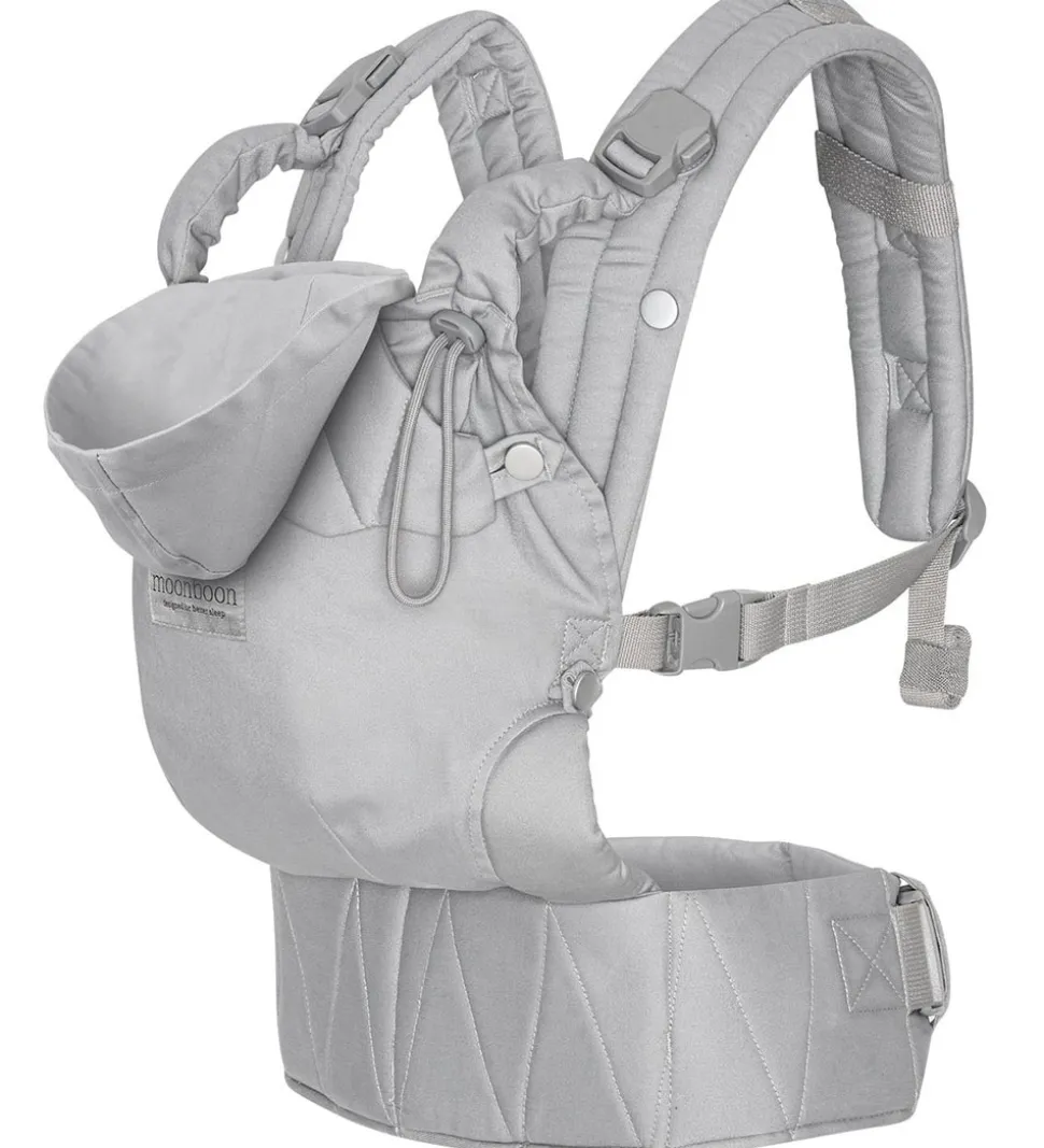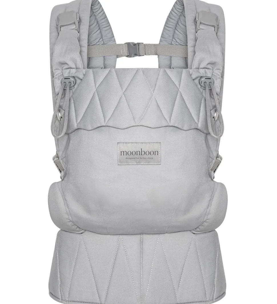 Moonboon bæreselen er ergonomisk udformet og designet med quiltede skulderpuder og med fokus på barnets hoftestøtte samt forældres rygkomfort.