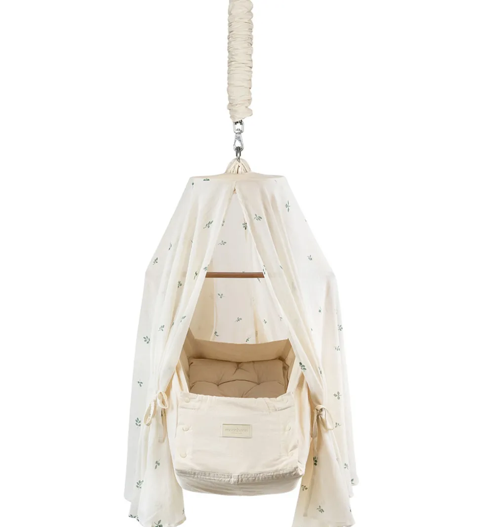 Moonboon baldakinen passer til en Moonboon slyngevugge, tvillingeslyngevugge og vugge. Baldakinen hjælper med at skærme din sovende baby for lys og bevægelser, så søvnen ikke bliver forstyrret, og så har den en god luftgennemstrømning, så barnet ikke får det for varmt. Baldakinen har en støttering i toppen og en åbning med bindebånd, så det er nemt og hurtigt at komme ind til barnet.