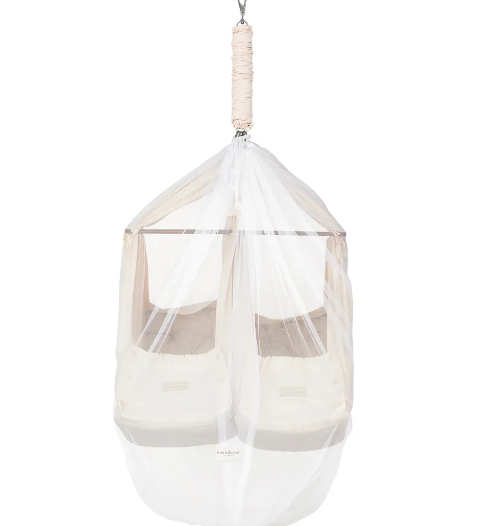 Moonboon myggenettet passer til en Moonboon vugge og tvillingeslyngevugge. Myggenettet er åndbart med en god luftgennemstrømning, hvor det er perfekt til brug i de varmere måneder til at beskytte din baby fra myg og andre insekter. Myggenettet har en overlappende åbning, så det er nemt og hurtigt at komme ind til barnet.