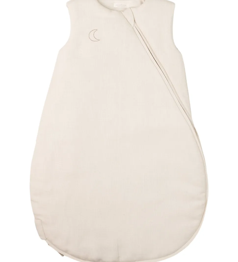 Moonboon soveposen har en bred bund for plads til naturlig bevægelse, og den åbnes med støjsvag lynlås, som også giver mulighed for nemt bleskift. Kvaliteten er en lækker blanding af hør og økologisk bomuld.