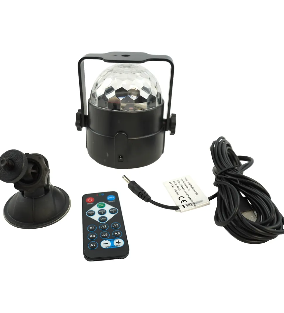 Fantastisk Music lampe i sort med lydaktiverede LED-lys. Lampen kan lyse i syv forskellige farver. Den kommer med en sugekop, fjernbetjening og 380 cm USB-kabel. Lampen kan let sættes fast på glatte overflader, og indstilles i det lys man ønsker.