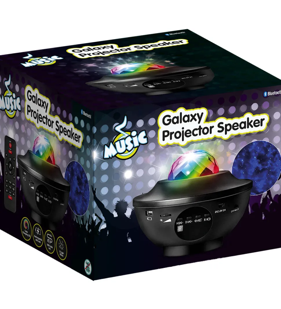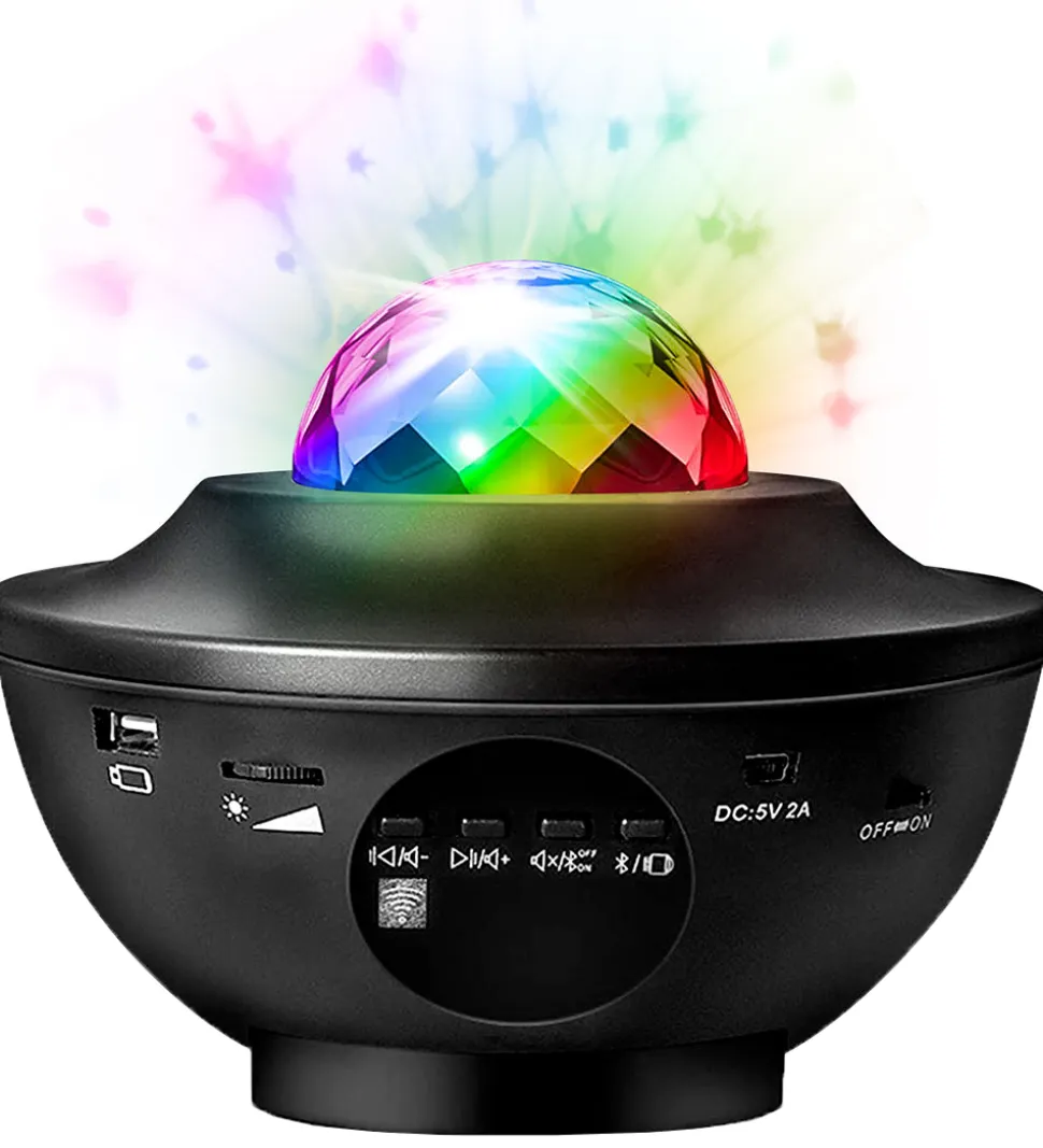 Music projekteren har 21 forskellige lyseffekter og en indbygget højtaler man kan tilslutte alle Android og IOS-enheder til via Bluetooth. Den kommer med en fjernbetjening så man nemt kan skifte farve, effekt, lysstyrke, slukke og tænde, skrue op og ned for højtaleren m.m.