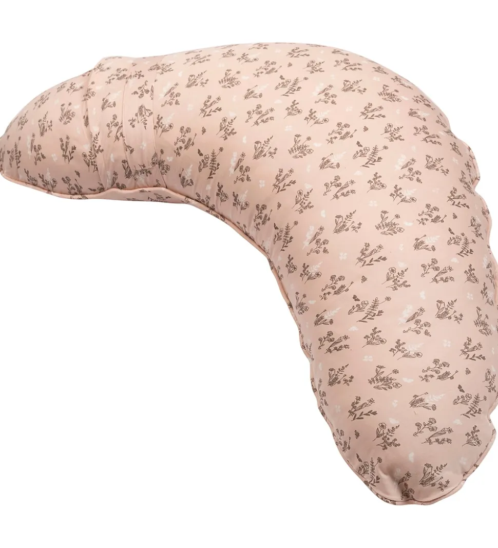 Sød Müsli ammepude i rosa med blomsterprint i brun og hvid.
