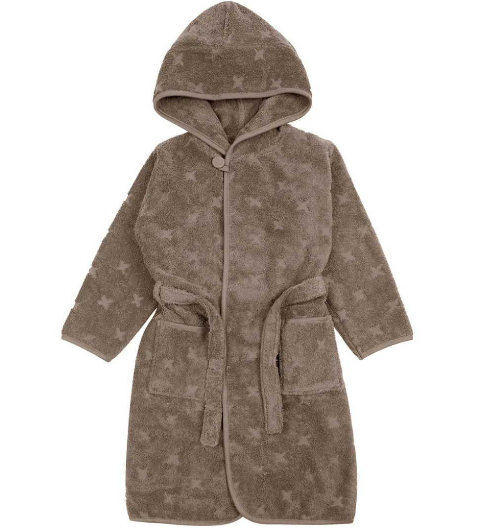 Flot Müsli badekåbe i støvet brun med et mønster af små, indprægede stjerner.