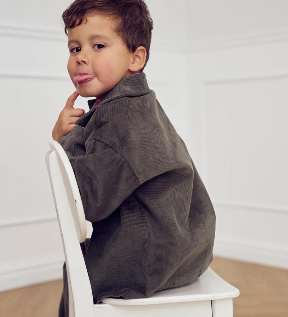 Müsli skjorten har lange ærmer, og i halsåbningen er der en klassisk krave. I højre side sidder der en brystlomme, og skjorten lukkes med sølvfarvede trykknapper.