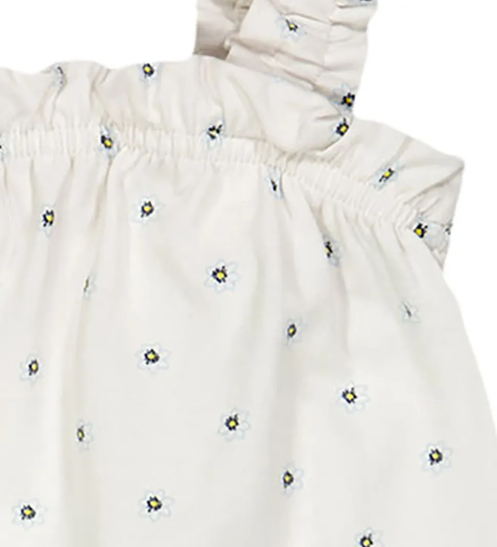 Charmerende Müsli sommerdragt i hvid med et delikat blomsterprint. Sommerdragten har søde flæsedetaljer ved stropperne, hvilket giver et yndigt look. Müsli er kendt for sit stilfulde design.