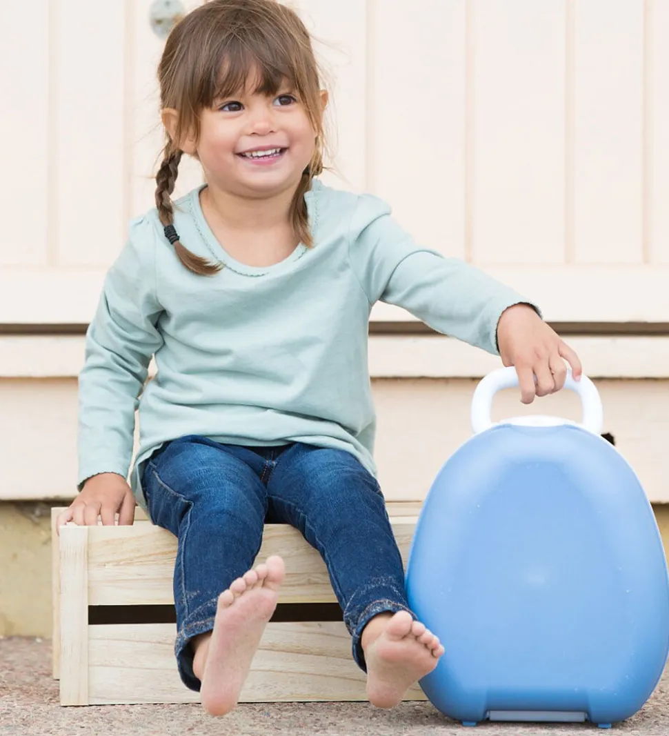 Praktisk My Carry Potty bærbar potte i pastelblå og hvid.