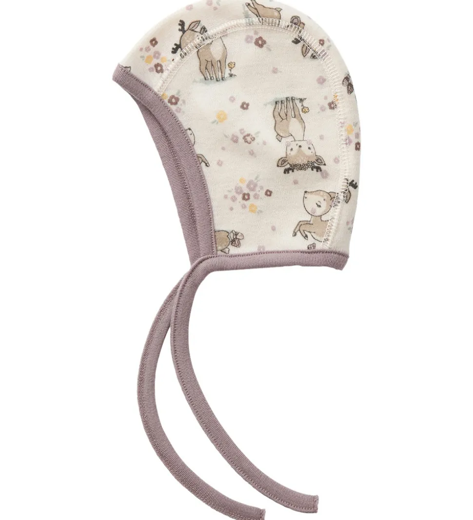 Dejlig Name It babyhjelm i en lys lilla nuance med et sødt alloverprint af små rådyr og blomster.