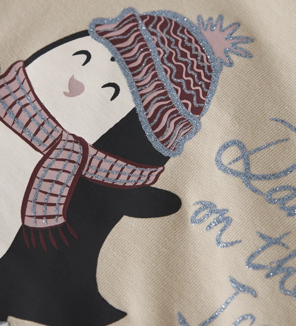 Den ene bluse er beige med en pingvin iført hue og tørklæde samt teksten “Dancing on the Ice”. Den anden bluse er hvid med et motiv af fem isbjørne i forskellige farvede rammer. Bluserne har en rund halsudskæring.