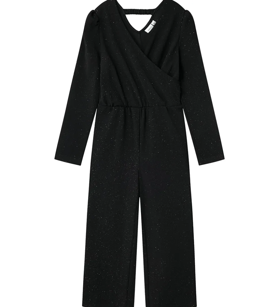 Flot Name It buksedragt med lange ærmer i en elegant sort farve, prydet med små glitrende detaljer. Buksedragten er designet med en for ?nsgående pasform, der tilføjer et stilfuldt udtryk.
