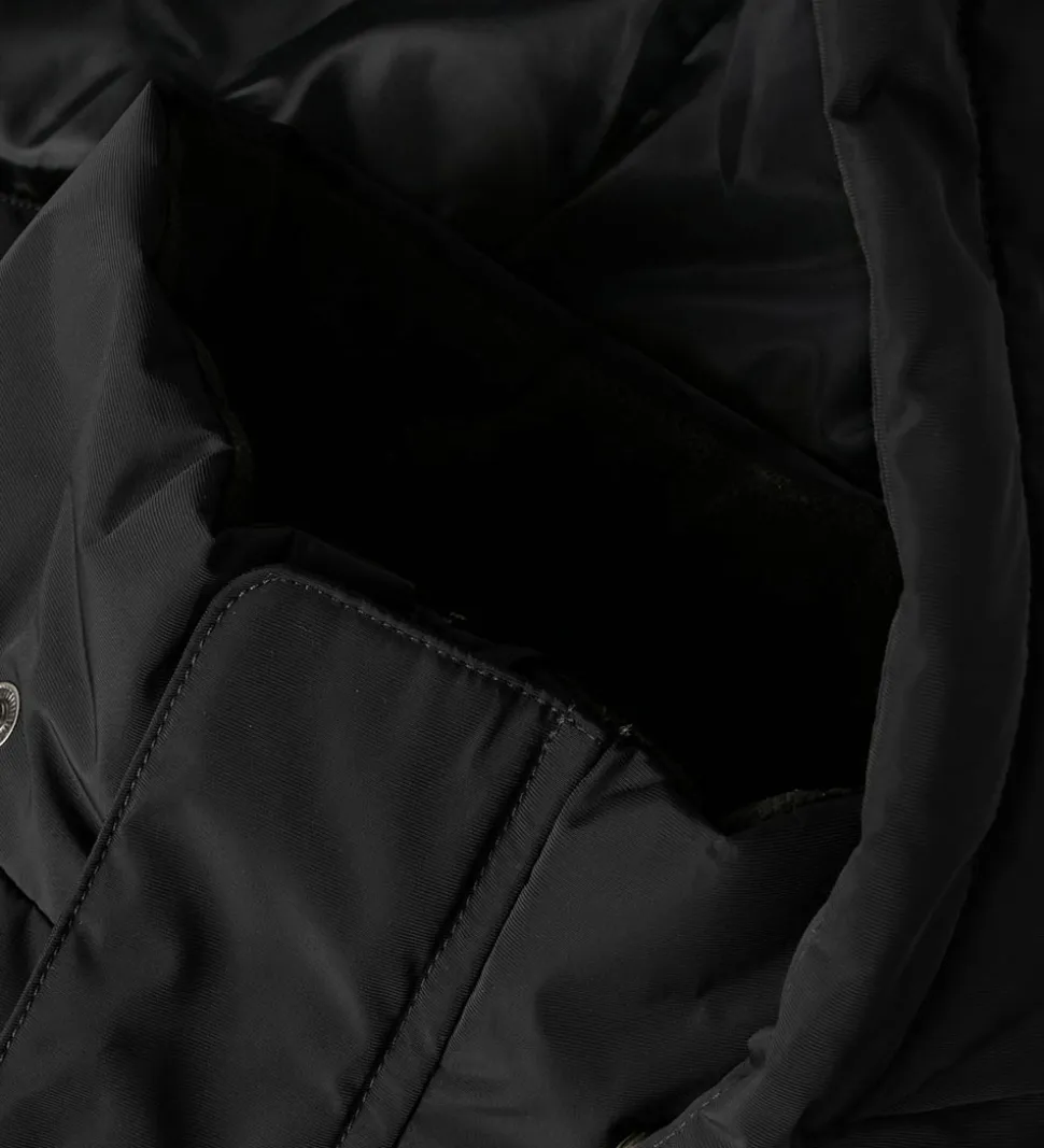 Flot Name It dynefrakke i ensfarvet sort og med vandrette syninger samt praktiske reflekser.