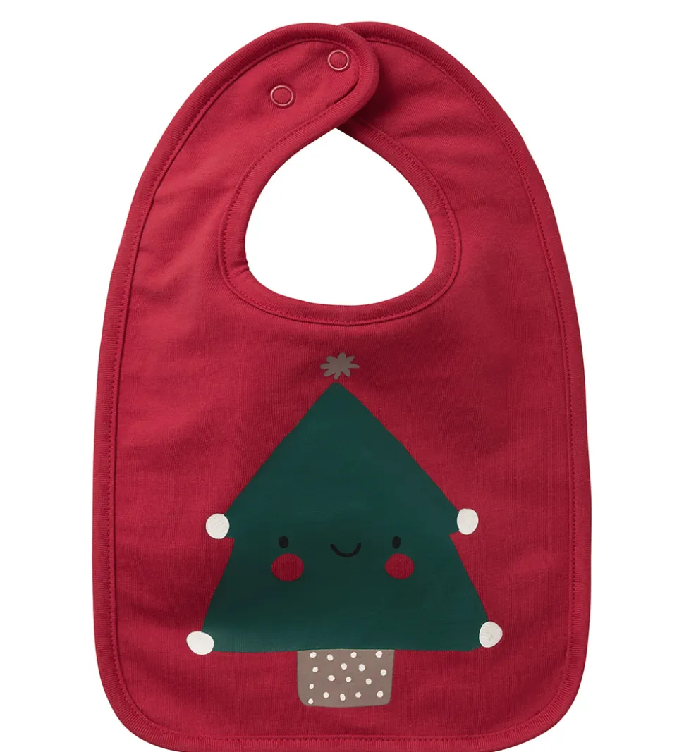 Charmerende hagesmæk fra Name It med et sødt print af et juletræ. Hagesmækken er praktisk og funktionel, ideel til måltider. Den dybe farve tilføjer et festligt præg til spiseoplevelsen. Hagesmækken lukker sikkert med knapper, hvilket sikrer en god pasform.