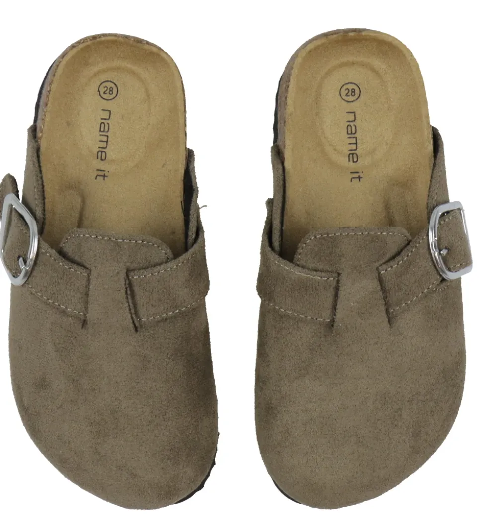 Name It sandalerne er en lukket slip-on model, som justeres med et spænde på ydersiden. Indvendigt er der blødt tekstil og indersåler, som er formet efter fødderne. Sandalerne har letvægtige ydersåler med et bølget mønster under bunden, som sikrer et godt fodfæste.