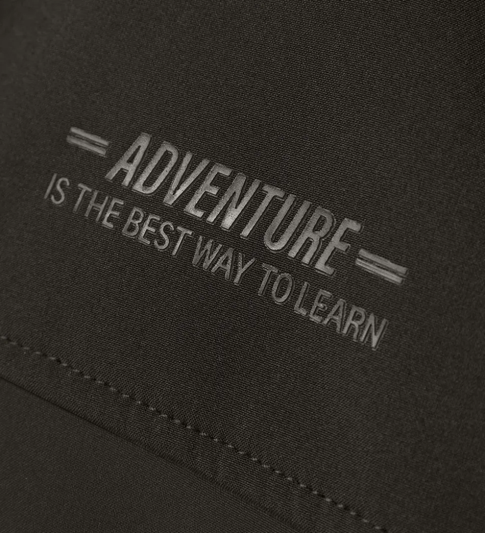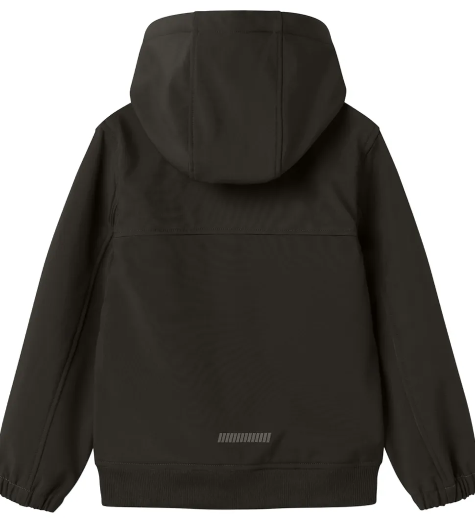 Fin Name It softshelljakke i sort med et diskret gummiprint på venstre bryst.