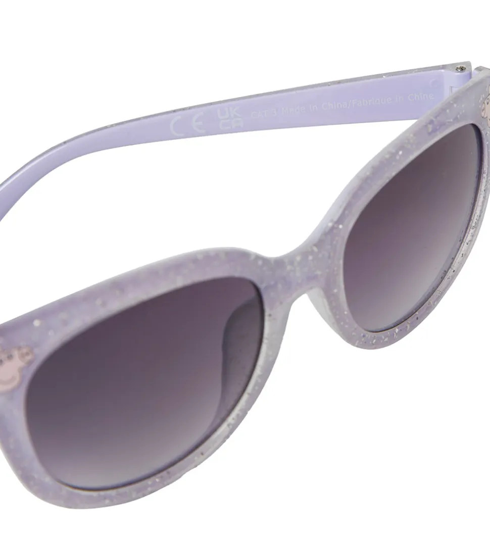 Smarte Name It solbriller i glimmerlilla med et lille Gurli Gris-print i siderne. Solbrillerne har sorttonede brilleglas.