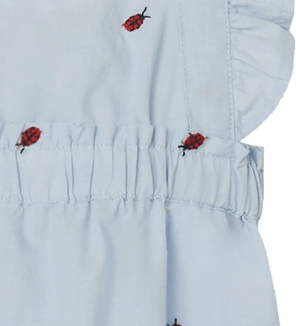 Fin Name it sommerdragt i støvet blå med søde mariehøner broderet over det hele.