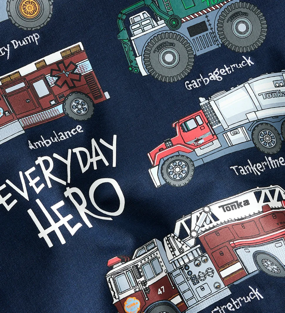 Flot Name It sweatshirt i navyblå med et print af forskellige arbejdsmaskiner på fronten. Name It sweatshirten har lange ærmer og en rund halsudskæring, der giver et praktisk og moderne udtryk. Indvendigt er der blødt, børstet bomuld.