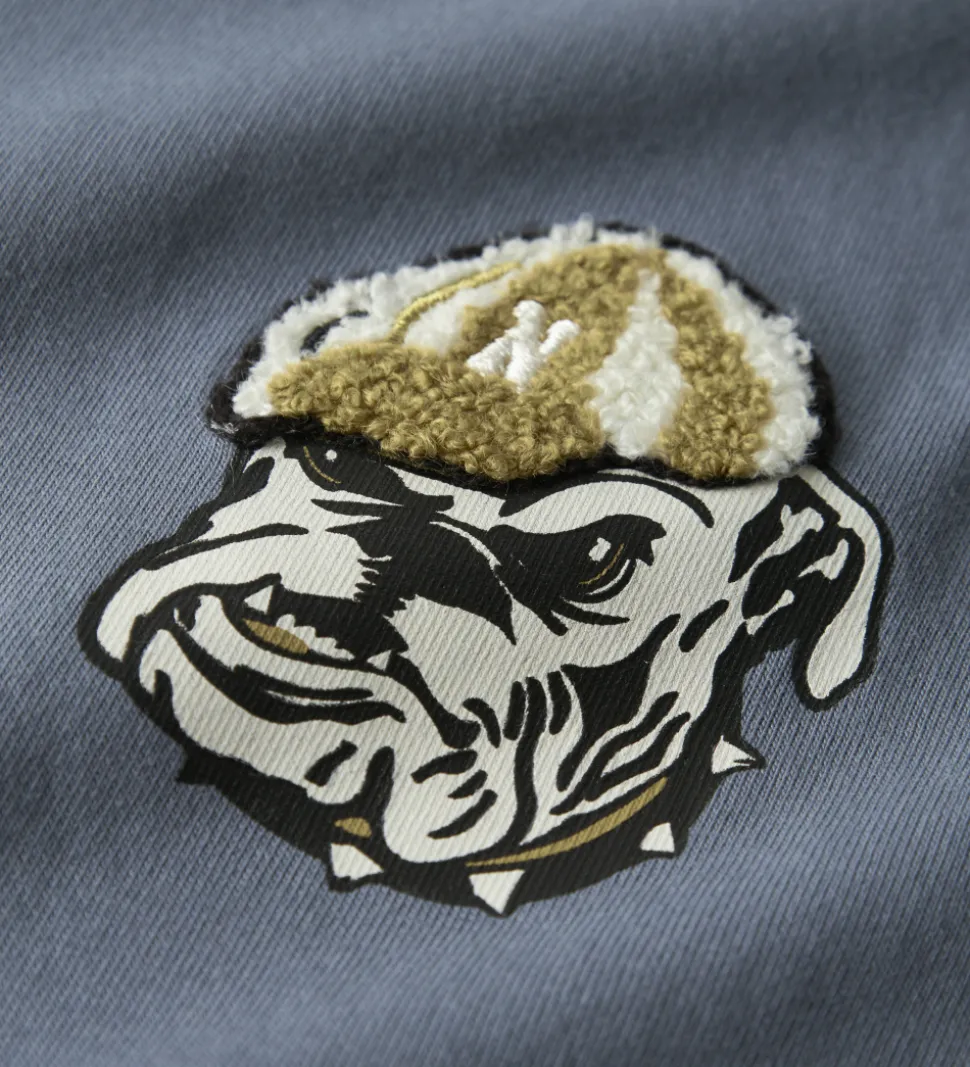 Smart Name It t-shirt i en afdæmpet blå nuance. T-shirten har et print på det ene bryst af en bulldog med en hat i frotté. Name It t-shirten er designet med en rund halsudskæring med en smal ribkant og korte ærmer.