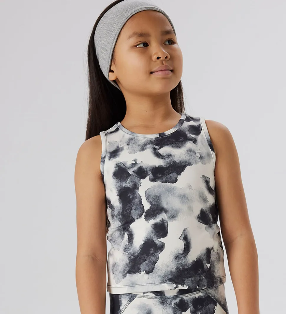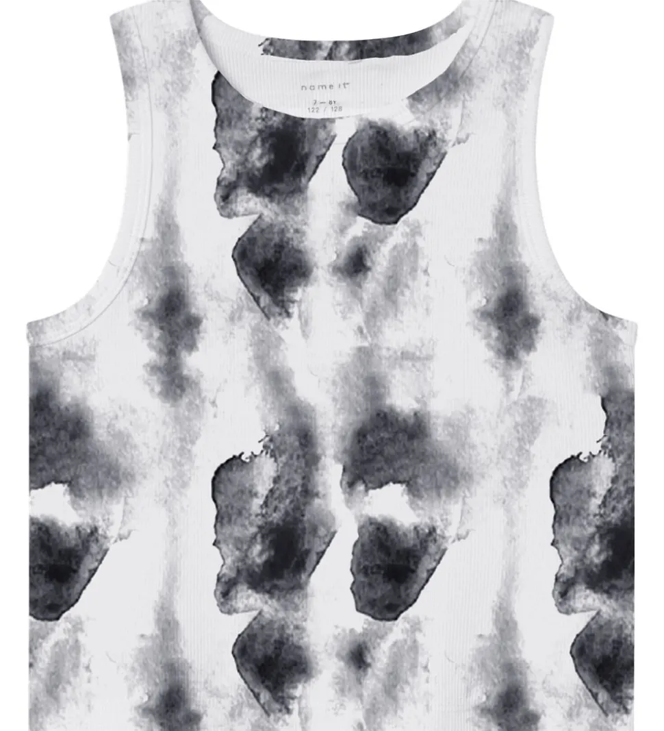 Skøn Name It top med et fint mønster i sort og råhvid. Toppen har brede skulderstropper og en rund halsudskæring.
