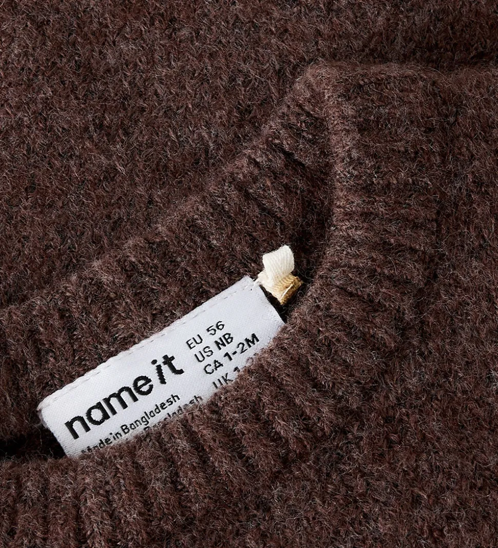 Stilfuld Name It vest i en flot brun nuance. Vesten har strikket struktur uden ærmer og ribkanter langs åbningerne.