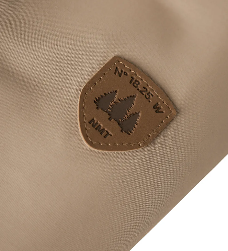 Name It vinterjakken har en aftagelig hætte, som sidder fast langs kraven med trykknapper. Vinterjakken lukkes fortil med en gennemgående lynlås med hagebeskytter og dobbelt vindstolpe, hvoraf den yderste kan lukkes med trykknapper. I ærmerne er der snefang med brede ribkanter. Fortil er der en lomme i hver side, som lukkes med trykknapper.