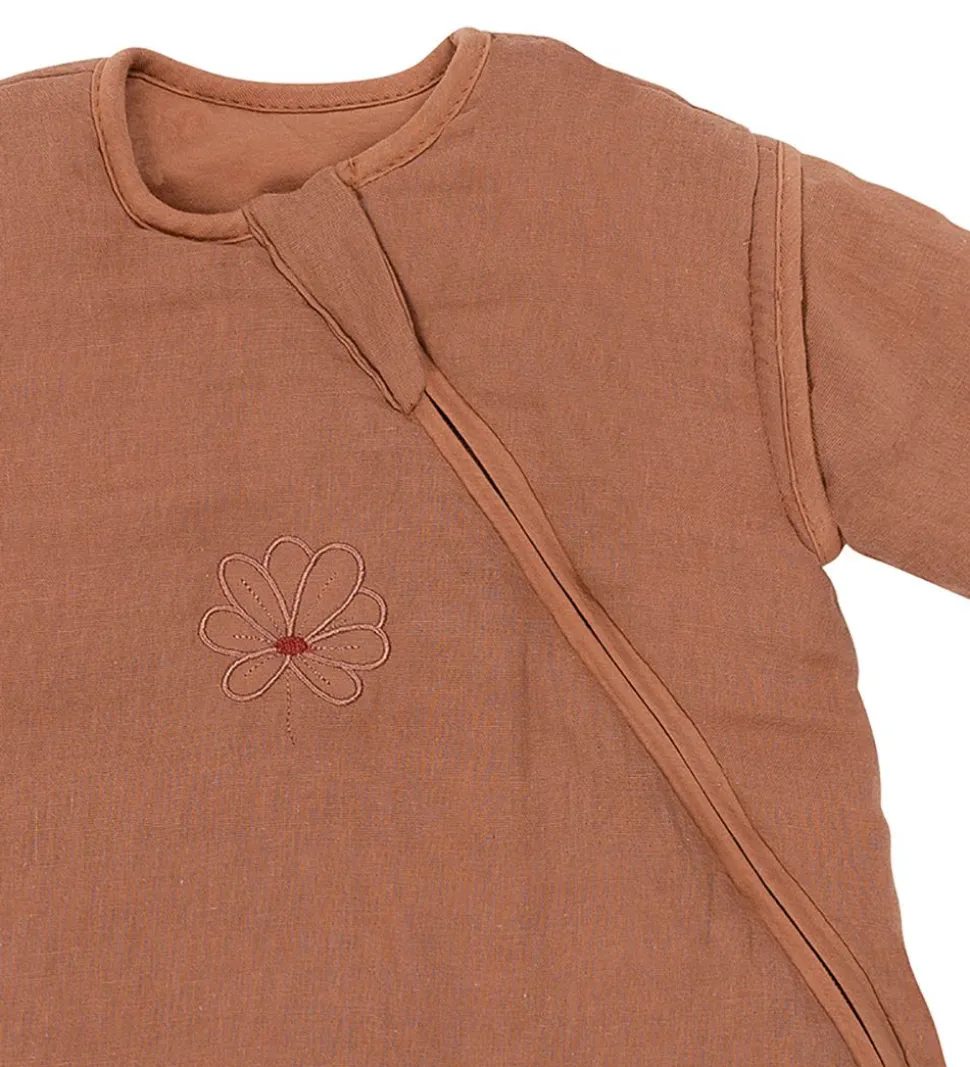 God Nattou sovepose i brun med et rosa skær, med en blomst broderet fortil.
