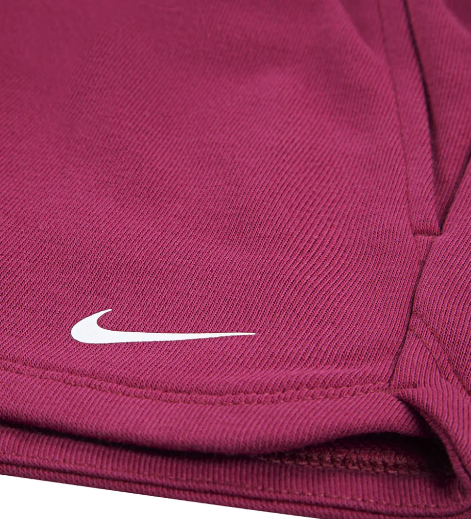 Seje Nike sweatshorts i rosarød med et hvidt logoprint på venstre lår og “Nike Pro” printet i hvid langs den øverste elastikkant. Sweatshortsene har en bred, sort elastik i taljen og korte, løse ben. I siderne er der praktiske lommer. Sweatshortsene har Dri-FIT teknologi, som holder huden tør og komfortabel mens man dyrker sport.